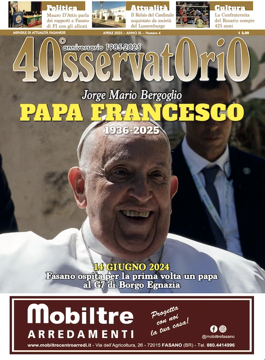 Fasano – Da oggi nelle edicole di Fasano e frazioni è in vendita il quarto numero del 2025, 40° anno di uscita, del mensile Osservatorio.