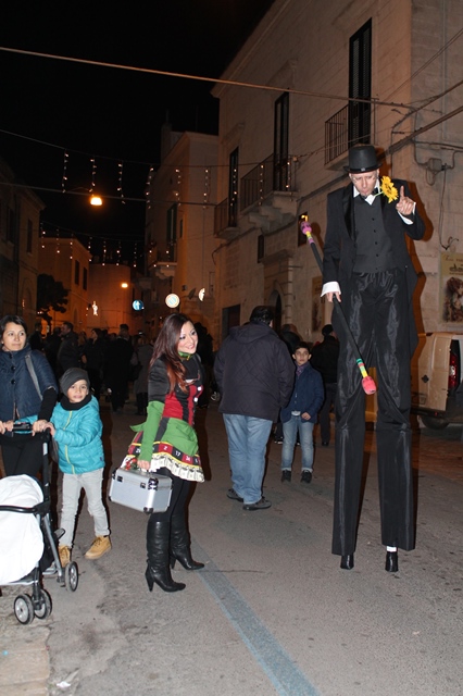 In corso Vittorio Emanuele e nell’itinerario che porta da piazza Ciaia a largo Seggio sono stati offerti spettacoli di danza e hip hop e sono state dislocate le casette di legno per proporre salumi, formaggi, panini con salsiccia, pettole, panzerotti e altre ghiottonerie da mangiare al momento. A farla da padrona, in particolare, è stata la scuola fasanese “Top Dance”, che ha allietato gli spettatori mostrando tutti i generi di ballo praticati da maestri e allievi.