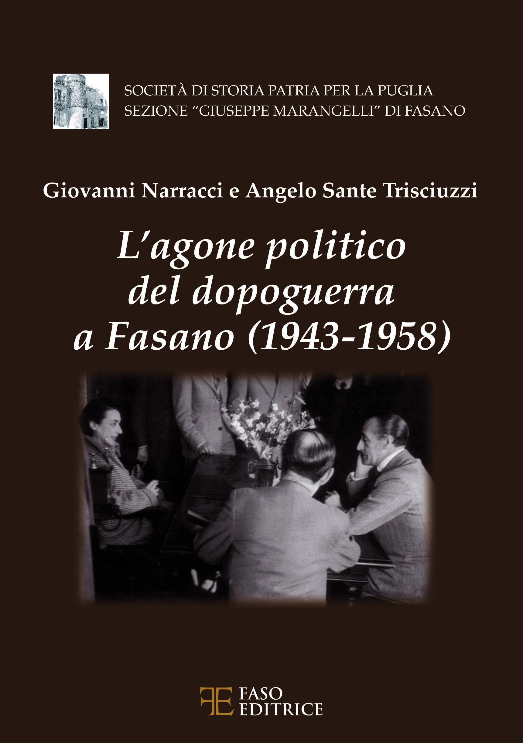 FASANO – 'L'agone politico del dopoguerra a Fasano (1943-1958)': questo il titolo del volume scritto da Giovanni Narracci e Angelo Sante Trisciuzzi, edito dalla Faso Editrice, che sarà presentato il 4 gennaio, alle 17.30 al Teatro Sociale di Fasano. Dopo i saluti del sindaco facente funzioni Gianleo Moncalvo ci saranno gli interventi dell'editore Zino Mastro e di Pierino Dell'Anno, Lello Di Bari, Orazio Ferrara e Sandrino Rubino oltre agli autori.