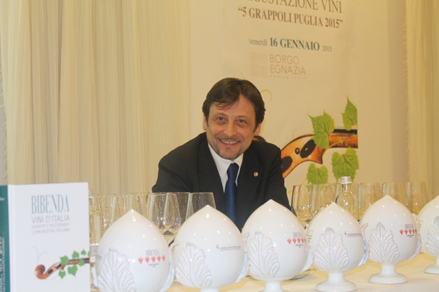 FASANO – Una degustazione all’insegna dell’eccellenza vinicola quella della presentazione dei vini pugliesi presenti nella Guida Bibenda 2015 svoltasi ieri sera (venerdì 16 gennaio) a Borgo Egnazia. La degustazione tecnica dei vini è stata guidata dal noto sommelier Paolo Lauciani, relatore professionista della Fondazione Italiana Sommelier, alla presenza del presidente Franco Ricci e dei produttori dei vini premiati con il riconoscimento "5 Grappoli Bibenda 2015". Ospite d’onore, ultimo produttore e investitore vinicolo in Puglia, è stato Bruno Vespa.