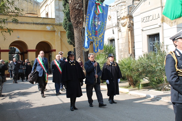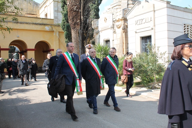 FASANO – Si è tenuta questa mattina (sabato 14 marzo), al cimitero di Fasano, la cerimonia commemorativa dello scultore pugliese Adolfo Rollo nel trentennale della morte avvenuta a Giovinazzo il 4 aprile del 1985. L’iniziativa è stata organizzata dal Comitato Scientifico per le celebrazioni col patrocinio del Comune di Fasano. Sono intervenuti alcuni sindaci delle città pugliesi nelle quali Rollo ha vissuto o in cui ha realizzato opere scultoree ovvero Lello Di Bari (Fasano), Michele Maria Longo (Alberobello) e Tommaso Depalma (Giovinazzo). Presente anche l'assessore comunale Vito Martiucci e il presidente del Rotary Club di Fasano Franco Romito. Proprio dal sodalizio fasanese, con l’imprenditore Andrea Belfiore, è partita l’idea della commemorazione dell’artista nato a Bari il 9 gennaio 1898. All'ingresso del cimitero fasanese si è riunito il corteo che ha raggiunto la tomba nella quale è sepolta la mamma di Rollo, scomparsa proprio durante la residenza dell’artista a Fasano. Lo scultore vi incise oltre al nome della madre (con data di nascita e di morte) anche il proprio e con la propria data di nascita (nel loculo accanto a quello della genitrice), pensando di dover rimanere a Fasano fino alla propria scomparsa e di esservi sepolto: sui due loculi Rollo realizzò una scultura raffigurante Cristo, ma le sue spoglie sono custodite nel cimitero di Giovinazzo dove visse negli ultimi anni di vita nel convento dei Cappuccini.