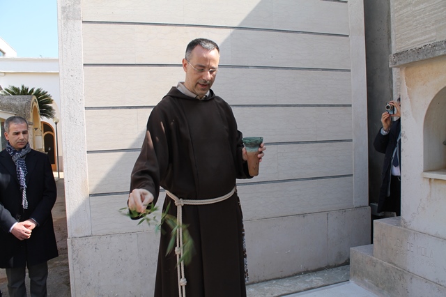 Dopo altri saluti istituzionali dei sindaci presenti e il racconto di Andrea Belfiore su come la curiosità lo abbia spinto a interessarsi di Adolfo Rollo è toccato a Padre Piergiorgio Taneburgo (responsabile provinciale dei Frati Cappuccini e direttore di S. Fara) benedire l'epigrafe dedicata allo scultore.