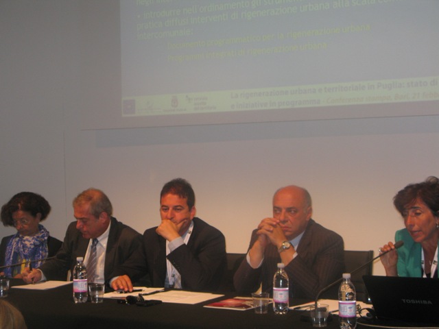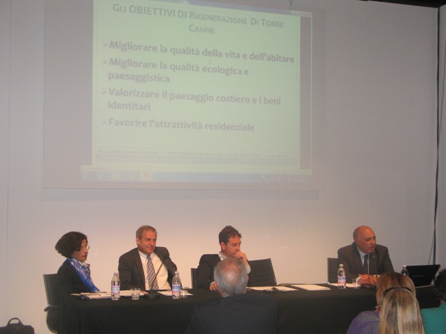 Il sindaco Di Bari era stato invitato per parlare degli otto progetti finanziati a Torre Canne nell’ambito del Piru (Programma integrato di rigenerazione urbana). Oltre al sindaco di Fasano hanno preso la parola l’assessore all’Urbanistica della Regione Puglia Angela Barbanente, il sindaco dell’Unione Comuni di Montedoro e Sava Unione Vito Punzi, l’assessore all’Urbanistica del Comune di Bari Elio Sannicandro, il dirigente regionale del servizio assetto del territorio Francesca Pace e il dirigente del settore Urbanistica del Comune di Lecce Luigi Maniglio. Assente, invece, il dirigente settore programmazione e strategie territoriali del Comune di Lecce Raffaele Parlangeli.