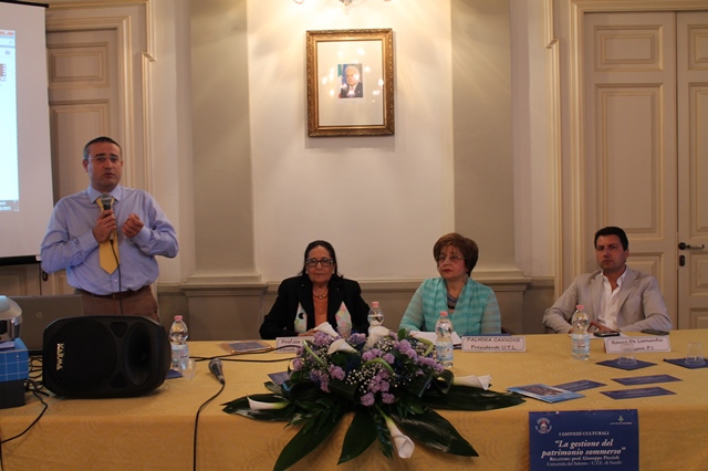 FASANO – “La gestione del patrimonio sommerso” è stato il tema dell’incontro pubblico tenutosi ieri (giovedì 7 maggio) nella Sala di rappresentanza del Palazzo municipale, a Fasano, organizzato dalla Università del Tempo Libero "S. Francesco d'Assisi" col patrocinio del Comune. Relatore dell’appuntamento è stato Giuseppe Piccioli, professore associato di Geografia all’Università del Salento, nonché responsabile scientifico del Laboratorio di Fotografia Subacquea dello stesso Ateneo. L’incontro ha visto anche gli interventi dell’assessore alla Pubblica istruzione Renzo De Leonardis, del console onorario della Croazia per la Puglia Rosa Alò e della presidente dell’Utl Palmina Cannone che ha coordinato la serata.