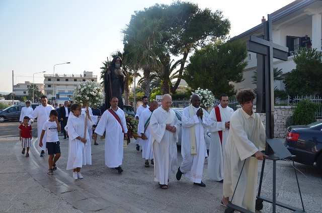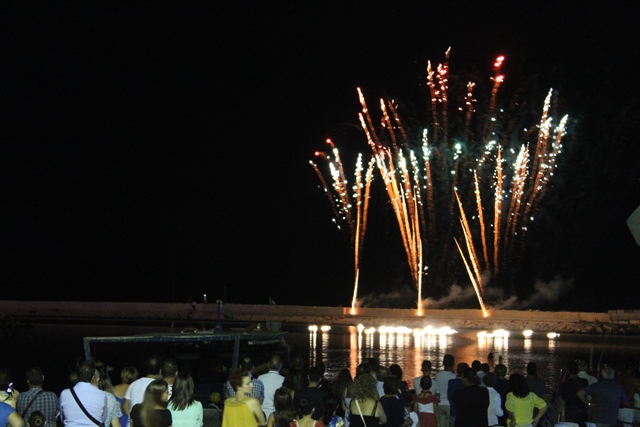 FASANO – Migliaia di persone sul lungomare che, con il naso all’insù, guardano lo spettacolo dei fuochi pirotecnici sul molo: con questa suggestiva immagine si è conclusa la festa patronale di Savelletri in onore di San Francesco da Paola. Una ricorrenza sobria che non manca di attirare fedeli e visitatori nel piccolo borgo fasanese. Le celebrazioni hanno avuto inizio nel pomeriggio di ieri (domenica 9 agosto) con la tradizionale processione delle imbarcazioni che, partendo dal porto principale, hanno fatto tappa alla Forcatella (e ritorno) accompagnando la statua del protettore: al rientro della parata, la Messa solenne si è tenuta, per la prima volta, sul nuovo braccio del porto, dove don Sandro Ramirez ha officiato una cerimonia seguita dai numerosi presenti in devoto silenzio.