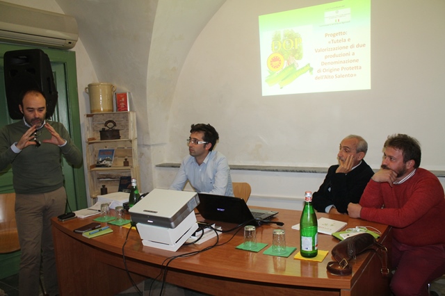 L'incontro, moderato dall'agronomo Cosimo Damiano Guarini, ha registrato, come primo intervento, quello di Francesco Calò del Consorzio Dop “Collina di Brindisi”, che ha illustrato il progetto "Tutela e Valorizzazione di due produzioni Dop dell'Alto Salento" e le nuove opportunità che il consorzio mette in campo per la promozione e valorizzazione del prodotto, oltre ai vantaggi per tutti i produttori che intendono associarsi al sistema di certificazione e tracciabilità. A seguire, l’intervento di Vito Ventrella, presidente dell’associazione “U’mbracchie” di Fasano, che ha raccontato il percorso di promozione del territorio legato ai prodotti certificati di qualità e alle produzioni tipiche.