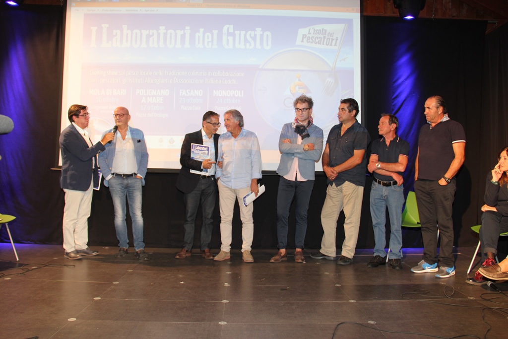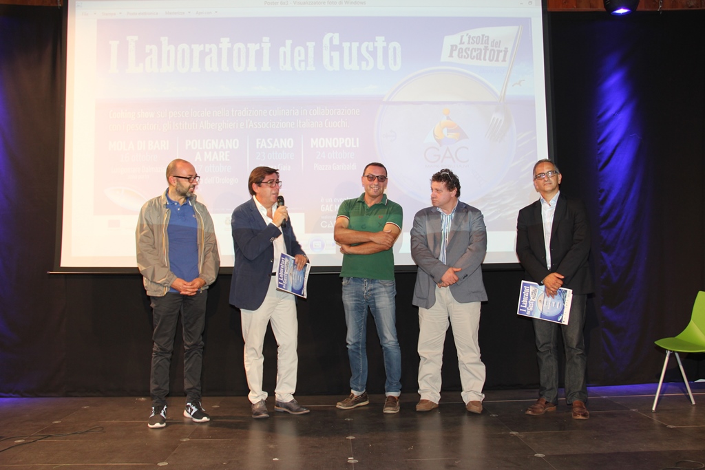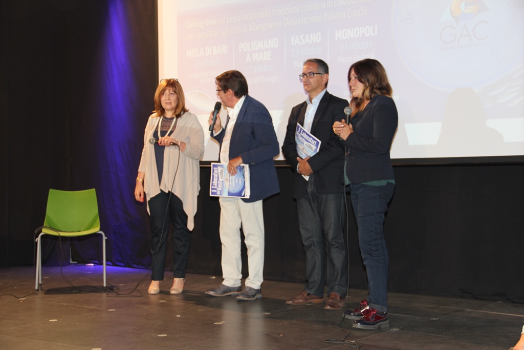 Proprio queste ultime sono state le vere protagoniste dell’evento con alcune ricette tradizionali in cui utilizzare pesce azzurro e pesce povero. «Non posso che essere soddisfatto della manifestazione odierna – ha sottolineato il presidente del Gac Munno -. Notare l’interessamento dei giovani verso la tradizione gastronomica dei prodotti del nostro mare non può che confermarci quanto sia necessario realizzare questo tipo di progetti. Un plauso da parte mia ai pescatori e alle rispettive mogli presenti, testimoni di tradizioni che occorre tramandare alle nuove generazioni». Gli operatori della pesca sono stati anche “attori” in alcuni video proiettati per l’occasione in cui si sono cimentati nell’esporre alcune ricette riguardanti il pescato fresco. Toccherà ora agli istituti alberghieri scegliere proprio le ricette da preparare in occasione dei quattro prossimi eventi che si terranno a Mola Di Bari, Polignano a Mare, Monopoli e Fasano e che saranno presentati nel corso di una conferenza stampa che si terrà sabato 10 ottobre, alle ore 11, presso il ristorante “Porto Rosso” a Monopoli