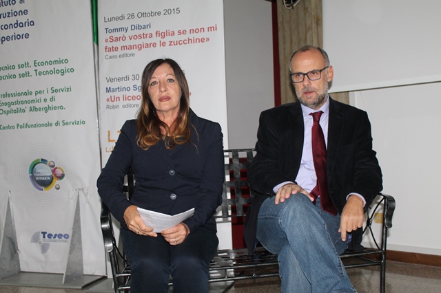 Il 26 ottobre, nell'auditorium dell'istituto, gli alunni hanno incontrato Tommy Dibari, autore del libro "Sarà vostra figlia se non mi fate mangiare le zucchine", edito da Cairo, già alla sua seconda edizione. I ragazzi hanno letto e analizzato il romanzo e ne hanno interpretato immagini, colto suoni e rievocato suggestioni attraverso le quali si è resa possibile una narrazione intrecciata e allargata. Il tema dell'adozione si è così attorcigliato a immagini, alla suggestione di parole descrittive ed evocative sulle emozioni della vita come paura, amicizia e amore. L'analisi filologica del romanzo si è poi accompagnata all'analisi dei testi di alcune canzoni suggerite dallo stesso autore. L'incontro ha visto anche la partecipazione del direttore artistico della Glitter Academy Teresa Cecere e di Achille Chillà, suggestiva "voce narrante" dell'incontro.