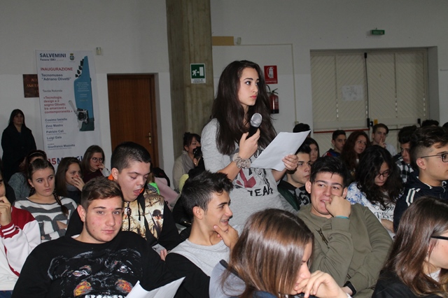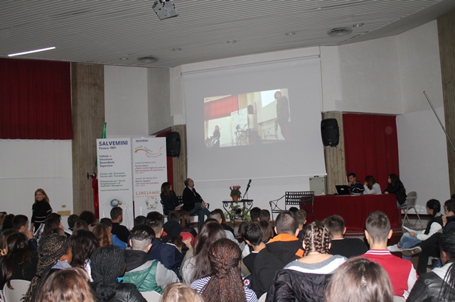 Ieri (venerdì 30 ottobre), invece, i ragazzi hanno incontrato Martino Sgobba, autore del romanzo "Un liceo da suicidio" (Robin Edizioni) e di "Destini", libro prossimo alla pubblicazione che mette insieme racconti molto differenti tra loro per tematiche, contesti, complessità culturale, legati dal fil rouge del destino. Ancora una volta la parola si lega all'immagine e la scrittura diventa il tratto attraverso il quale vedere, osservare e delineare il presente. Nell'incontro di ieri si è parlato soprattutto, però, di "Un liceo da suicidio". Sgobba, preside di lunga data, ha tenuto alta l'attenzione degli studenti rispondendo alle domande di questi ultimi con brillantezza senza mai cadere nella demagogia. I giovani studenti del Salvemini hanno offerto anche contributi video che hanno arricchito il dibattito. "La scuola dovrebbe trasmettere tre cose – ha concluso il suo intervento l'ospite -: educare al rispetto della verità, farci diventare migliori e il gusto della bellezza".