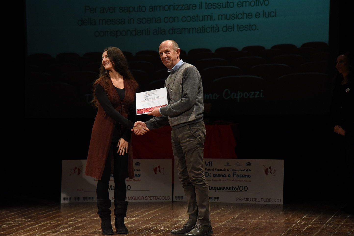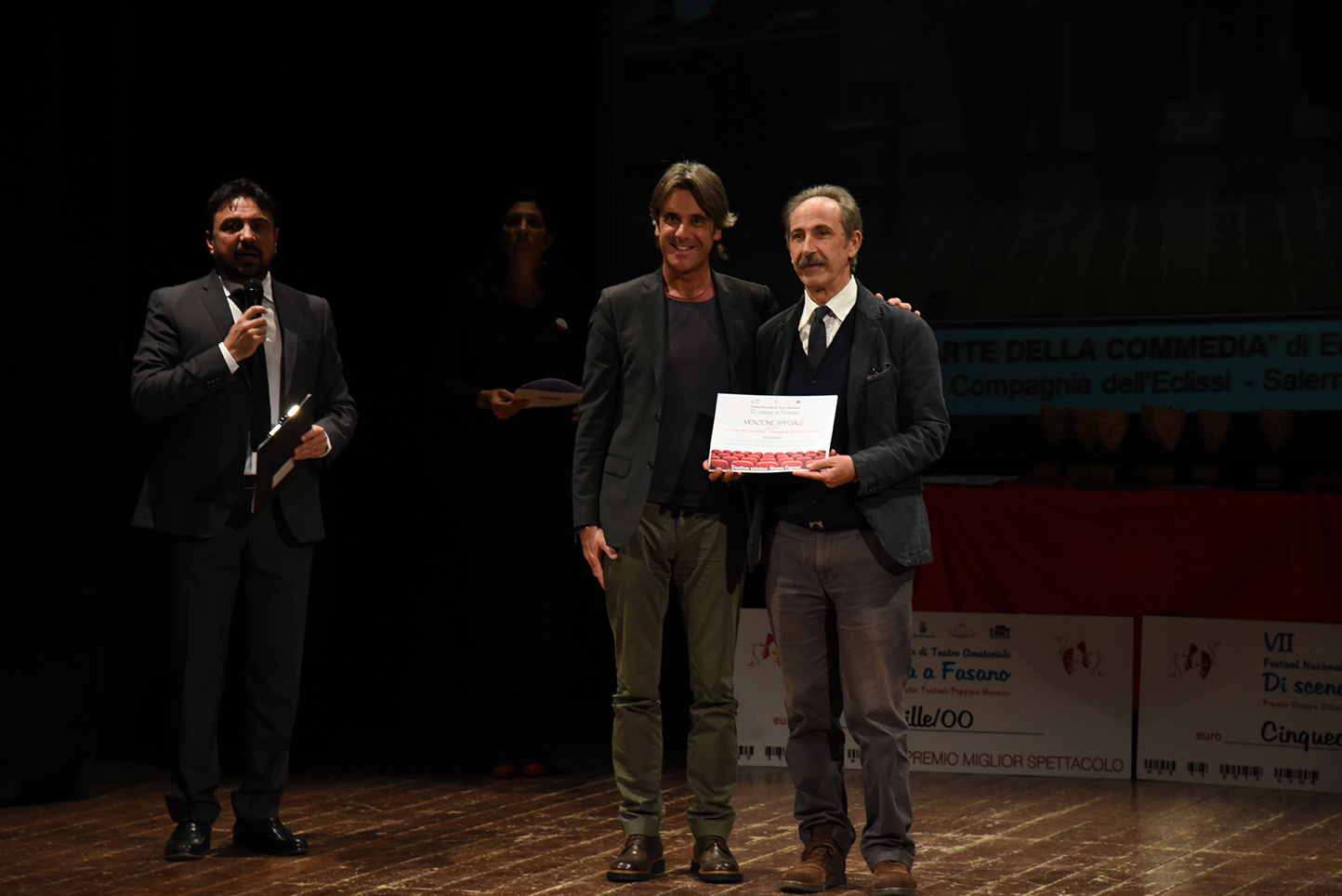 Proprio quest’ultima pièce ha vinto il premio della stampa, assegnato da Dino Cassone (di Fasanolive.com), Antonella Argento (OsservatorioOggi.it), Angelica Sicilia (Osservatorio), Michele Cavallo (Radio Diaconia) e Pierluigi Caroli (GoFasano.it), «per la messa in scena brillante e coinvolgente, grazie alla sintonia interpretativa dei protagonisti che hanno saputo trasmettere con efficacia l’intelligenza e l’acume di un testo originale e quanto mai attuale». Il premio speciale della Uilt (Unione Italiana Libero Teatro) pugliese, consegnato dalla presidente Teresa Taccone, è stato assegnato al regista 18enne Eros Pascale del Mercante di Venezia di William Shakespeare reinterpretato dalla giovanissima compagnia “Navig@ttori” di Bologna affinché «il teatro possa vivere il talento puro di un attore, nonché regista, capace, coraggioso e creativo».