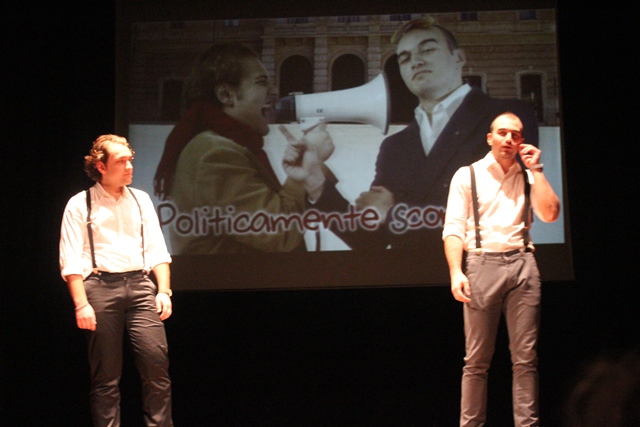 I due giovani attori sono stati protagonisti assoluti al Teatro Sociale in un esilarante show di satira