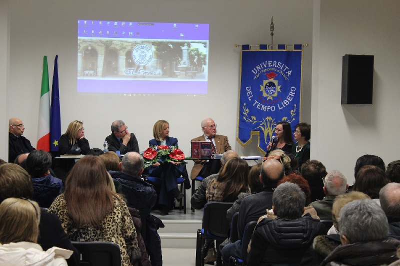 FASANO – Parlare di violenza sulle donne o di femminicidio genera spesso luoghi comuni o equivoci: ma il delicato argomento deve essere opportunamente affrontato affinché le vittime di atti scellerati possano trovare il coraggio di denunciare ogni atteggiamento nefando. L’Università del Tempo Libero “San Francesco d’Assisi” di Fasano ha dedicato al tema l’incontro che si è svolto ieri pomeriggio (venerdì 26 febbraio) nella sede sita ai Portici delle Teresiane: per l’occasione sono stati presentati i primi due volumi della trilogia poetica e letteraria “Ciò che Caino non sa”, intitolati rispettivamente “La tela di Penelope” e “Odi et amo”, curati dalla scrittrice Maria Teresa Infante, originaria di San Severo.