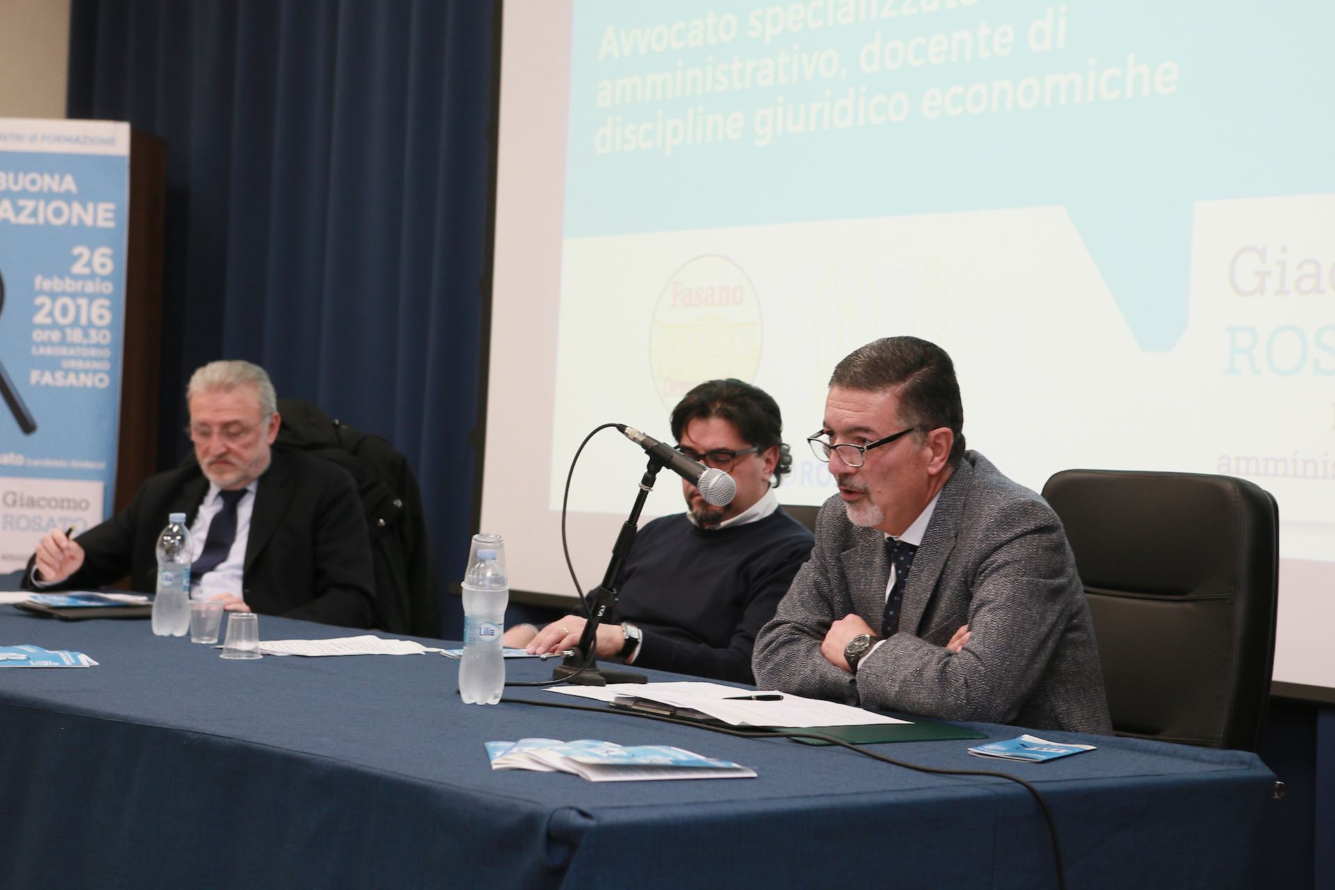 E' stato Michele Fina di "Fasano Democratica" ad aprire la serata e ad introdurre i relatori. L'avvocato Dino Musa ha dato l'input al suo collega Sante Nardelli sui temi da trattare, tutti con un unico denominatore: la buona amministrazione. E così Nardelli ha disquisito, partendo dalla definizione di amministratore locale, sui suoi doveri giuiridici e sui principi su cui si basa l'attività amministrativa specificando i ruoli che competono alla parte politica e e quelli che spettano, invece, alla macchina amministrativa (funzionari e dirigenti). Nardelli, già sindaco di Fasano, si è soffermato molto sull'imparzialità, economicità, efficacia e trasparenza che deve contraddistinguere proprio il ruolo tecnico-amministrativo, vero motore della macchina comunale. Chiaro e diretto, l'avvocato Nardelli ha tracciato, insomma, la figura del buon amministratore. L'ex sindaco non si candiderà alle prossime comunali ma riteniamo che data l'alta considerazione che Rosato ha di lui non è escluso che, in caso di vittoria, proprio l'imprenditore gli affidi un ruolo di primo piano nella squadra di governo.
