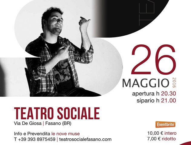 FASANO – Si concluderà giovedì 26 maggio la rassegna messa a punto dall’associazione culturale “Le Nove Muse” per la stagione 2015/2016 al Teatro Sociale di Fasano: protagonista dell’ultimo appuntamento sarà Michele Savoia, attore, regista e autore di origini fasanesi che da anni lavora prevalentemente a Roma per importanti produzioni teatrali. Il giovane artista di talento presenterà il monologo intitolato “Radio Shame”, scritto e interpretato con Vincenzo Ciardo.