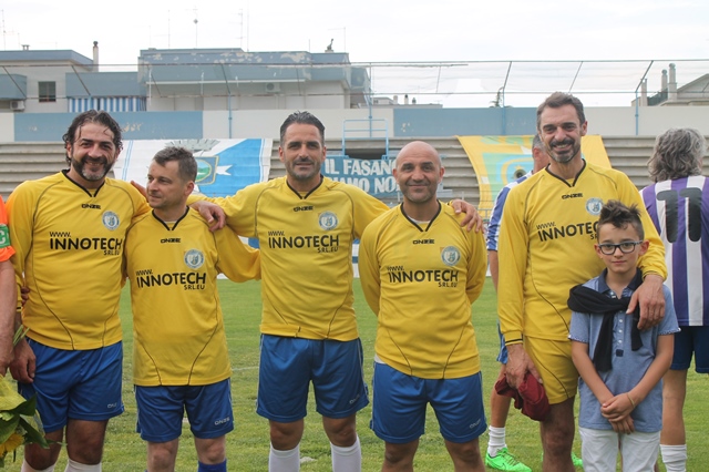 FASANO – In molti, ieri pomeriggio (domenica 12 giugno), non sono riusciti a trattenere le lacrime. Troppe le emozioni nel rivedere tutti insieme alcuni dei calciatori che hanno fatto la storia del Fasano ma anche del Pezze di Greco e dell'Alberobello. Alcuni con un po' di pancetta, altri con i capelli bianchi. Ma l'inesorabile trascorrere del tempo non cancella le gesta compiute da questio uomini quando erano calciatori nel pieno dell'attività. Erano sull'erbetta del Vito Curlo, tutti insieme, per ricordare un uomo che del calcio aveva fatto ragione di vita ma che davanti a questo anteponeva il rispetto e l'amicizia, valori che ora gli sono ricambiati ad eterna memoria: mister Peppino Palmisano. Al Vito Curlo, dicevamo, è andato in scena il memorial dedicato all'indimenticabile allenatore fasanese. Il tutto in una splendida iniziativa organizzata dai tifosi denominata "Fasanesità nel Dna". Splendida perché oltre a vedere la storia del Fasano in carne e ossa con i calciatori partecipanti al memorial a supporto è stata allestita una mostra fotografica con tante formazioni della storia calcistica biancazzurra. Sulla recinzione, poi, le magliette indossate nel corso degli anni dalla formazione fasanese. Molti i cimeli messi insieme dai tifosi e sarebbe bello, magari, che l'esposizione potesse essere visionata anche in futuro in altre occasioni.