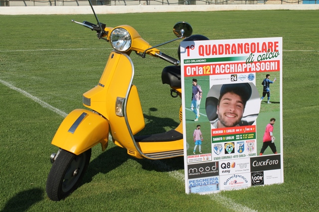 FASANO – La sua vespa gialla a metà campo, alcuni striscioni che lo ritraggono sorridente, quel sorriso smorzato lo scorso 12 dicembre da un terribile incidente stradale che lo ha strappato ai suoi cari e ai suoi amici. Ma il ricordo di Leo Orlandino, il giovane portiere fasanese rimasto vittima, come detto, di un incidente stradale, non svanirà mai. E a ulteriore prova è stata la prova d'affetto fornita dai suoi tanti amici ieri (venerdì 8 luglio), in occasione della prima giornata del quadrangolare di calcio “Orla12 L'acchiappasogni" (soprannome con cui Leo si era amichevolmente autodefinito e riconosciuto da tutti i suoi amici): un'iniziativa nata in collaborazione con la redazione giornalistica Pugliacalcio24, la polisportiva “PerBrindisi”, l'associazione “Il Fasano siamo noi” e l'associazione "AccordiAbili".