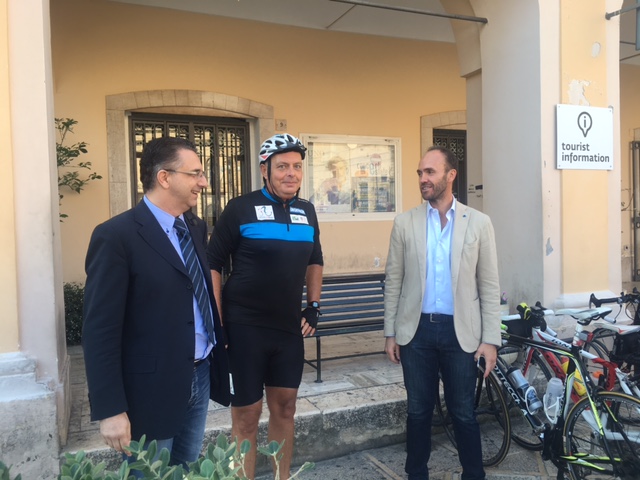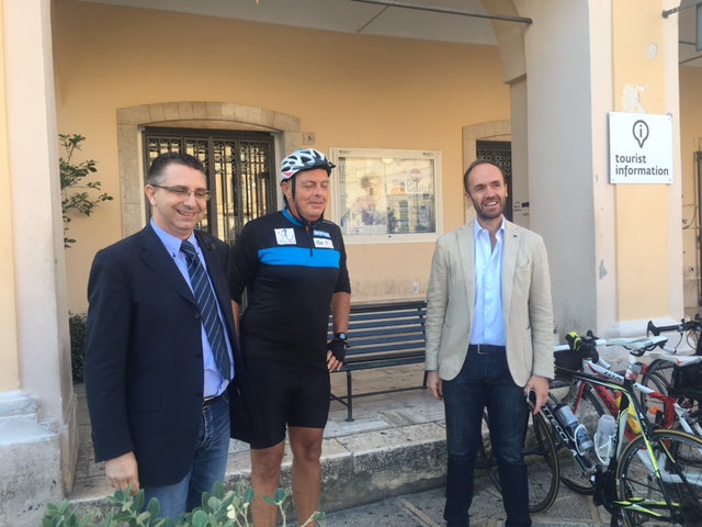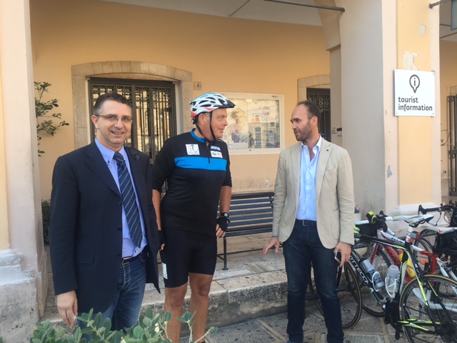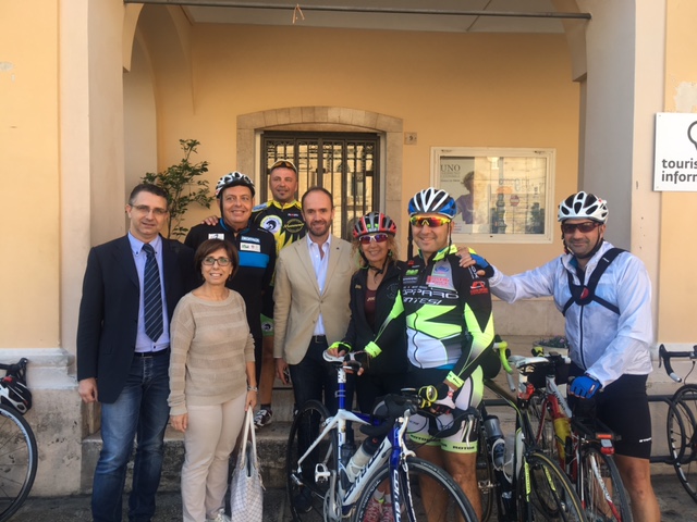 FASANO – iL "Bat Bike Tour" è il nuovo giro di Friends’ Bike Asd Us Acli, partito da Brindisi ieri (venerdì 30 settembre). Il gruppo di ciclo-amatori-turisti brindisini, nel corso della prima tappa, hanno raggiunto Trani ma durante il percorso sono passati per Fasano dove hanno ricevuto il saluto del sindaco di Fasano Francesco Zaccaria, del consigliere comunale Gina Albanese e del presidente provinciale dell'Acli Antonio Albanese.