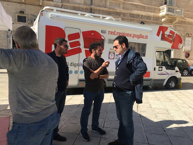 Gli operatori che lavorano sul camper sono stati accolti in piazza Ciaia dal sindaco di Fasano Francesco Zaccaria. «E' stata una giornata di sensibilizzazione ed informazione su questa misura regionale molto importante ed attesa – spiega il primo cittadino -. E' una misura di sostegno per i più bisognosi ma non solo. E' anche un'opportunità che viene data ai cittadini che hanno la possibilità di incamminarsi verso un percorso professionalizzante. E per questo chiediamo che anche le imprese, le cooperative, le parrocchie e le associazioni aderiscano affinché possano usufruire di questa possibilità in quanto potranno acquisire i servizi e la collaborazione delle persone che si iscriveranno al Red gratuitamente. E daranno la possibilità a queste persone di esplorare un nuovo percorso, una nuova chance da offrire a chi oggi vive in una situazione di difficoltà».
