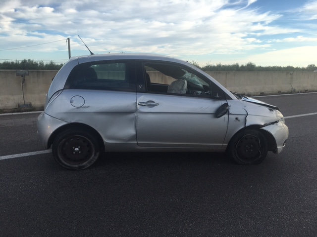 FASANO – Deve gridare al miracolo una giovane donna di Fasano rimasta coinvolta questa mattina (venerdì 21 ottobre) in un incidente stradale sulla Statale 379 all'altezza di Torre Canne. La donna, mentre percorreva la trafficata arteria in direzione Brindisi, per cause in corso di accertamento, ha perso il controllo della sua Lancia Y andando prima ad urtare contro il guard rail, ribaltandosi e andando poi a sbattere contro il new jersey centrale finendo la sua corsa nel bel mezzo della carreggiata. Non sono stati coinvolti altri veicoli.