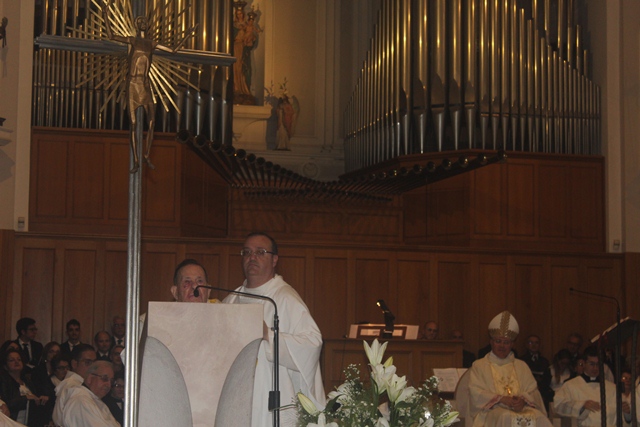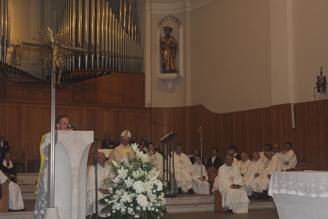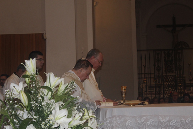 «Celebrazioni come quella che stiamo vivendo stasera servono innanzitutto e soprattutto a renderci conto che è Lui che guida il suo popolo, è Lui che ci conduce verso la fierezza della vita – ha esordito il vescovo Favale nella sua omelia –. Se noi riusciamo a servire il popolo di Dio, cioè voi, è perché agisce il Buon Pastore, che ci riempie del suo spirito. Vorrei consegnare questa certezza: Gesù ci guida, è il sostegno della Chiesa. Lui sceglie degli uomini, senza pensare alle qualità o alle capacità, ma sceglie strumenti docili al suo spirito che possano essere realtà vive che annunciano la sua parola di salvezza. Il Buon Pastore vive e agisce ed è lui a mandare i sacerdoti. Il ministero sacerdotale è un continuo dare la vita. Siamo chiamati a camminare con il gregge, a donarci a Lui fino a dare tutto. Noi oggi ci stringiamo attorno a don Carmelo – ha proseguito – ; quel 2 luglio ‘56 lui, giovane, si era prostrato dinanzi alla volontà del Signore, e lo Spirito scese su di lui attraverso il vescovo di allora, mons. Carlo Ferrari. Quel momento lo ha reso icona visibile del Buon Pastore. Sessant’anni sono un ministero lungo. Ha svolto diverse mansioni, soprattutto nella comunità di Fasano […]. Solo il Signore sa il bene che ha potuto compiere e noi oggi stiamo per dire al Signore grazie perché ti sei servito di questo strumento: sono certo che tanti tra voi conservano memoria di una parola, di un gesto che don Carmelo ha potuto compiere. Che il suo servizio sacerdotale diventi fecondità per la comunità di Fasano nel far germogliare tanti altri semi sacerdotali. L’età e la salute non gli consentono di impegnarsi direttamente nell’azione pastorale; che la gioia del suo sacerdozio possa trasmettere alla comunità l’entusiasmo del sacerdozio. A lui chiediamo che possa essere un prete della semplicità, testimone della sua fede, che tutto nella sua vita parli di Dio. Sia per tutti noi un dono. Don Carmelo, ti chiediamo di non stancarti, di vivere l’obbedienza della fede e la generosità del tuo sacerdozio attraverso le persone che incontri ogni giorno – ha concluso – ».