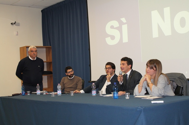 FASANO – Giovani politici fasanesi crescono. Ieri sera (sabato 19 novembre), al Laboratorio Urbano di Fasano, si è tenuto l'incontro pubblico "Si e No, giovani a confronto" promosso dai Giovani di Forza Italia e dai Giovani del Partito Democratico. A confrontarsi Pier Francesco Palmariggi, segretario e consigliere comunale del Partito Democratico e Andrea Di Bari, segretario dei Giovani Democratici per le ragioni del Sì; Luca Fanigliulo, vice coordinatore di Forza Italia e Mariangela Renna, vice coordinatrice di Forza Italia Giovani, per le ragioni del No. A moderare l'incontro il presidente del Circolo della Stampa Gino Bianco.