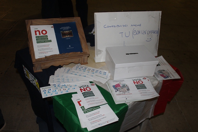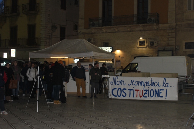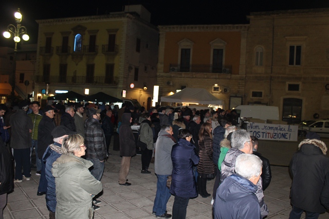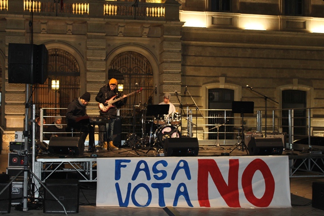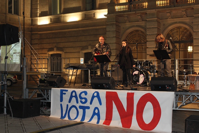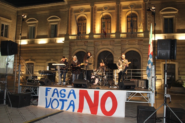 FASANO – Nella serata di ieri (giovedì 1 dicembre), il “Comitato Fasano vota No” ha promosso un evento musicale a sostegno del no per il referendum costituzionale in programma per domenica 4 dicembre. In piazza Ciaia, a partire dalle 19, per l’appuntamento “Sulle note del no” si sono alternate tante voci e musicisti. Tra i tanti: Domenico Grassi e Rosanna Savoia, che hanno aperto la sequenza in musica, e poi South Jazz Trio, Screenrock, Bob Marcialledda, K-Ant Combolution, e ancora Fabrizio Giannuzzi, Giulio Sassanelli, Ciappy Dee Jay, i Ricover e tanti altri ancora.