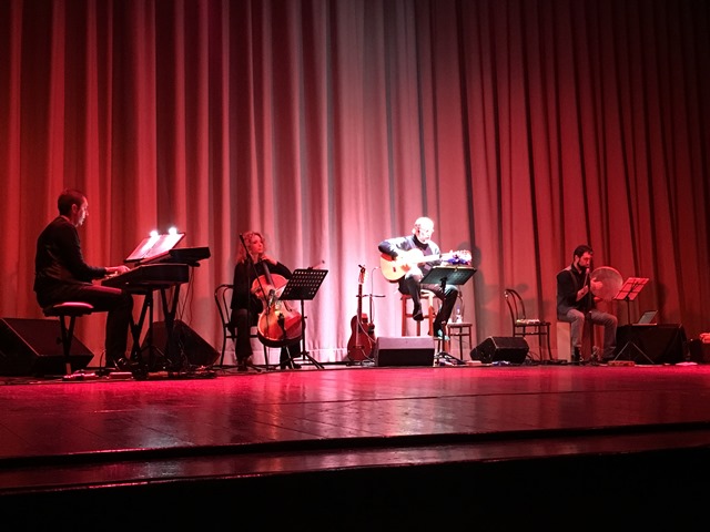 Nell'allestimento al Kennedy de' Tullio si è fatto accompagnare da bravissimi musicisti quali Donato Fumarola alle tastiere, Sabrina Loperfido al violoncello, Alessio Santoro alle percussioni e Antonio Galantino alle chitarre. La prima parte vede protagonista una Maria bambina. Ed ecco, in serie, Laudate Dominum, L'infanzia di Maria, Il ritorno di Giuseppe, Il sogno di Maria ed Ave Maria, brani intervallati da letture, con una narrazione che ben si intrinseca nello schema musicale. La seconda parte si è aperta con Maria nella bottega del falegname per poi proseguire con Via della Croce, Tre madri, Il testamento di Tito e Laudate Hominem. Dicevamo degli arrangiamenti nuovi. Si nota uno studio particolareggiato di de' Tullio per l'opera. Nulla è fuori posto e ogni strumentista fa la sua parte integrandosi in una concezione musicale che sarebbe piaciuta decisamente al grandissimo Faber.