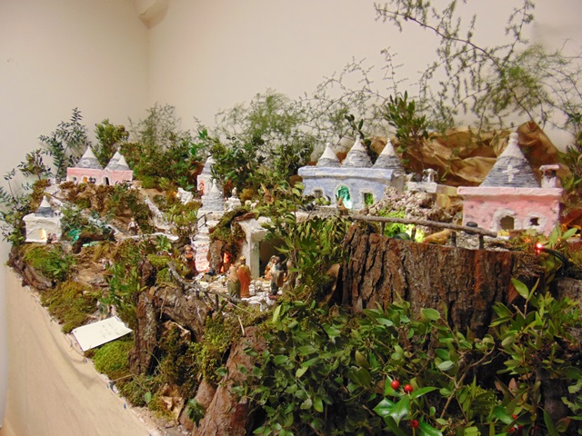 Impreziosivano la mostra: stupendi Bambinelli in cera, cartapesta, sotto campana e non, Natività antiche, e moderne create per il polo espositivo utiellino da Gaetano Fasano, ceramista di Grottaglie, e altre eseguite a filet e ricamo. Stupenda la riproduzione della Natività puntinata di Mcail Galizia del 1969, arricchita dalle bandiere dei paesi europei con i quali l'Utl, da circa tre anni, ha attivato scambi culturali, grazie all'impegno del console della Croazia per la Puglia e Basilicata, prof.ssa Rosa Alò. Oltre ai presepi, si potevano visitare: il Museo “Arti antiche fasanesi” e le Mostre “Ricami in cornice” (coll. Ettore Ruppi) e “Costumi, cappellini e accessori d'epoca” (coll. Concetta Giannoccaro e Rosa Catania). Guidavano i visitatori nel lungo percorso: la presidente dell'Utl Palmina Cannone e la consigliera Giovanna Acquaviva. La prof.ssa Cannone, inoltre, forniva le notizie storiche sulla sede dell'associazione, ex convento delle carmelitane claustrali, “donne monache”, le cosiddette teresiane del sicentesco Monastero di San Giuseppe. Tre secoli di storia locale, il cui incipit risale al 1604, quando Giovanni Calefati, insigne benefattore fasanese, dispone per testamento il lascito di duemila ducati da impiegare nella costruzione di un monastero di “donne monache” in Fasano. Il 3 maggio 1694 vi s'insediano le suore del Conservatorio di S. Teresa, fondato il 19 novembre 1681 dalle sorelle di origine spagnola Palma e Francesca La Itta y Loio. Vi resteranno fino al 16 giugno 1908.