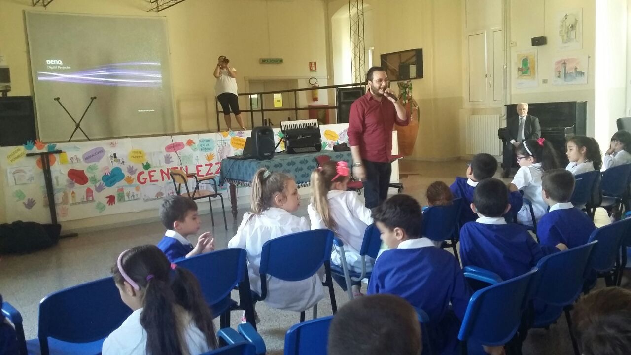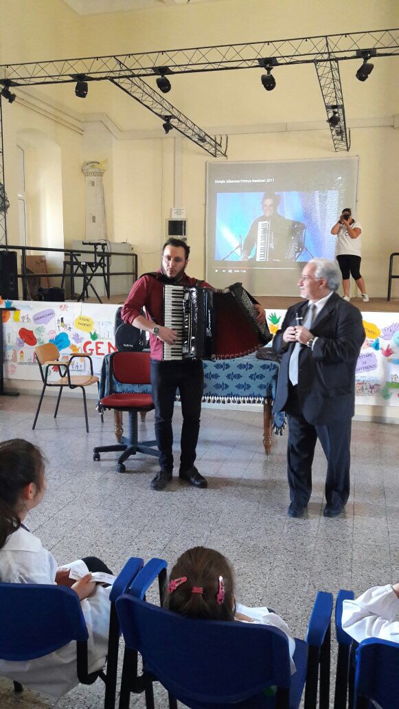 FASANO – Lo scorso 30 maggio, il grande artista Giorgio Albanese, fisarmonicista e compositore Jazz, ha partecipato come ospite della scuola I Circolo Collodi, alla realizzazione del progetto “Da grande vorrei fare…” con un laboratorio di improvvisazione musicale al fianco del dirigente Gennaro Boggia per presentare ai bambini della Collodi la grande capacità della musica di trasmettere emozioni. “Quello del musicista non è un lavoro come gli altri. La particolarità di tale professione è legata essenzialmente all’arte e pertanto, nasce dalla voglia di comunicare. La musica è indissolubilmente connessa alle emozioni; nasce dal cuore e suscita in chi ascolta, sentimenti ed immaginazioni”. Il Dirigente, conversando con i bambini, ha proposto un gioco per verificare se davvero la musica fosse capace di evocare emozioni, alternando così, manifestazioni di gioia e commozione, serenità e rabbia, tristezza e allegria, ad una serie di esecuzioni musicali improvvisate dal maestro Albanese, che hanno suscitato particolari sentimenti nei nostri bambini. Simpatico il momento in cui il musicista ha coinvolto i bambini in giochi ritmici importanti per destare la loro attenzione .