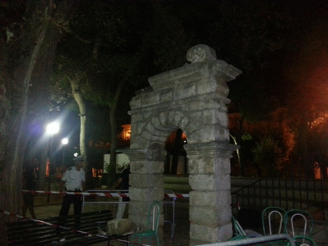 Infatti un altro ragazzo si è arrampicato sulla struttura che ha ceduto di colpo. Un grosso masso ha centrato i due bambini che erano seduti su alcune sedie poste sotto l’arco e non si sono accorti di quanto stava accadendo sulle loro teste. Sul posto sono intervenuti carabinieri e vigili urbani. I militari dell’Arma, coordinati dal maresciallo Piero Pugliese, hanno interdetto l’area e controllato la situazione fino a tarda notte.