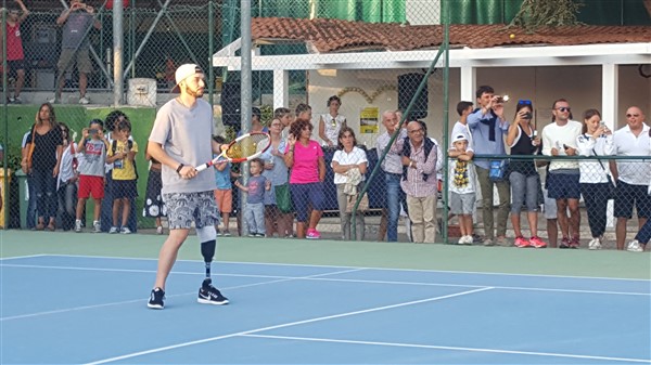 La campionessa ha regalato al “guerriero” la maglietta di suo marito Fabio Fognini, altro campione della terra rossa, da cui ha avuto il figlio Federico, così chiamato in memoria di Federico Luzzi, tennista aretino morto nel 2008 a 28 anni a causa di una leucemia fulminante. Non solo. La stessa, è tornata a impugnaree una racchetta, dopo mesi di fermo a causa della recente gravidanza, per un brevissimo doppio con Giovanni Custodero. A lui, infine, il Tennis Club ha voluto donare una targa nominandolo socio onorario. In visibilio i tanti fan della tennista brindisina, soprattutto i più piccoli, che non si sono lasciati sfuggire l’occasione di una foto ricordo o di un autografo.