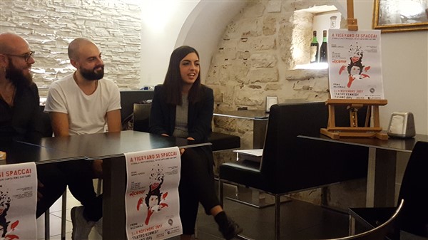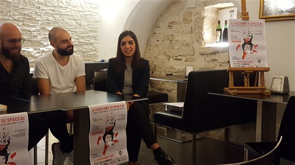 FASANO – Sarà in scena il 3 e 4 novembre al Teatro Kennedy di Fasano, in prima nazionale, A Vigevano si spacca!, spettacolo della Compagnia Colpo di Maschera per la regia di Mimmo Capozzi. La storia, a tratti musicale, di chi canta Rino Gaetano, avrà come protagonisti Stefano Bux, Vito Cofano, Domenico Demy Di Tano e Raffaele Trisciuzzi, meglio noti come “Ricover”. La band di affiatati amici e musicisti si cimenterà per la prima volta su un palcoscenico per far sorridere e riflettere attraverso la buona musica, quella di Gaetano appunto, soprattutto mettendo a nudo la propria ricerca della verità sulla vita, sulla morte e sui testi del cantautore, ricordati per l’ironia e il nonsenso. La presentazione del progetto artistico si è svolta ieri pomeriggio (martedì 17 ottobre) al Faso Caffè.
