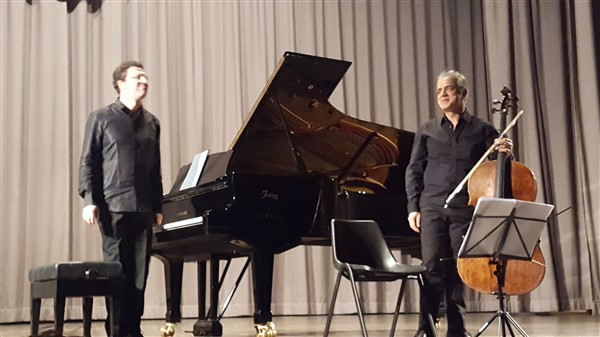 I due artisti, apprezzati in tutto il mondo in veste di solisti con orchestra e con diversi ensemble, ma anche come illustri accademici, hanno presentato un programma in due parti. Nella prima, è stato dato spazio a Flow my tears di Dowland e Sonata in fa maggiore op. 99 di Brahms; nella seconda, poi, Intermezzo-Scherzo di Debussy, Tema III da Bell’Antonio di Sollima e Suite Italienne di Stravinsky. Naturalmente, i presenti non hanno perso occasione per chiedere un bis al duo che, dal canto suo, ha accettato di buon grado la richiesta con una composizione originale di Sollima e una speciale versione del pezzo Bohemian Rhapsody dei Queen, un vero regalo per i presenti che hanno concesso lunghi e meritati applausi ai due interpreti.