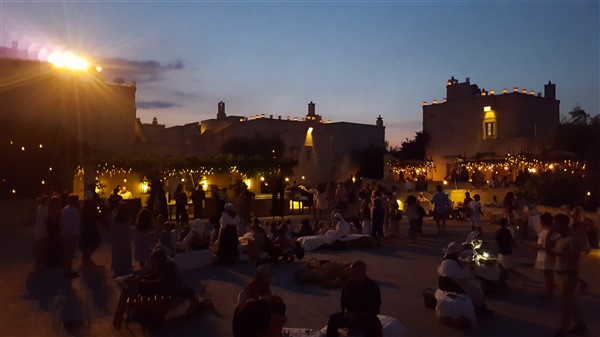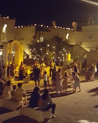 Bancarelle piene di bontà culinarie, illuminazione suggestiva, fragranze che si disperdono nell’aria mentre lo sguardo si perde tra la maestosità della location. Un incanto, è il caso di dirlo. A trasmettere calore e allegria anche la musica del gruppo di origini tarantine “Terraross”, ormai attrazione per il Borgo. Grazie alle loro canzoni, tra pizzica, tarantella e brani storici del panorama italiana – come Nel blu dipinto di blu di Modugno cantato a squarciagola – si irradia il senso della tradizione e della cultura nostrana. Insomma, io ho provato a vivere il tutto mettendo da parte per un momento il mio radicamento a Fasano e alla Puglia ed, estraniandomi, ho percepito la bellezza della semplicità e dell’accoglienza, la cura di ogni dettaglio e la maestria dell’organizzazione di una Festa che lascia quasi senza parole.