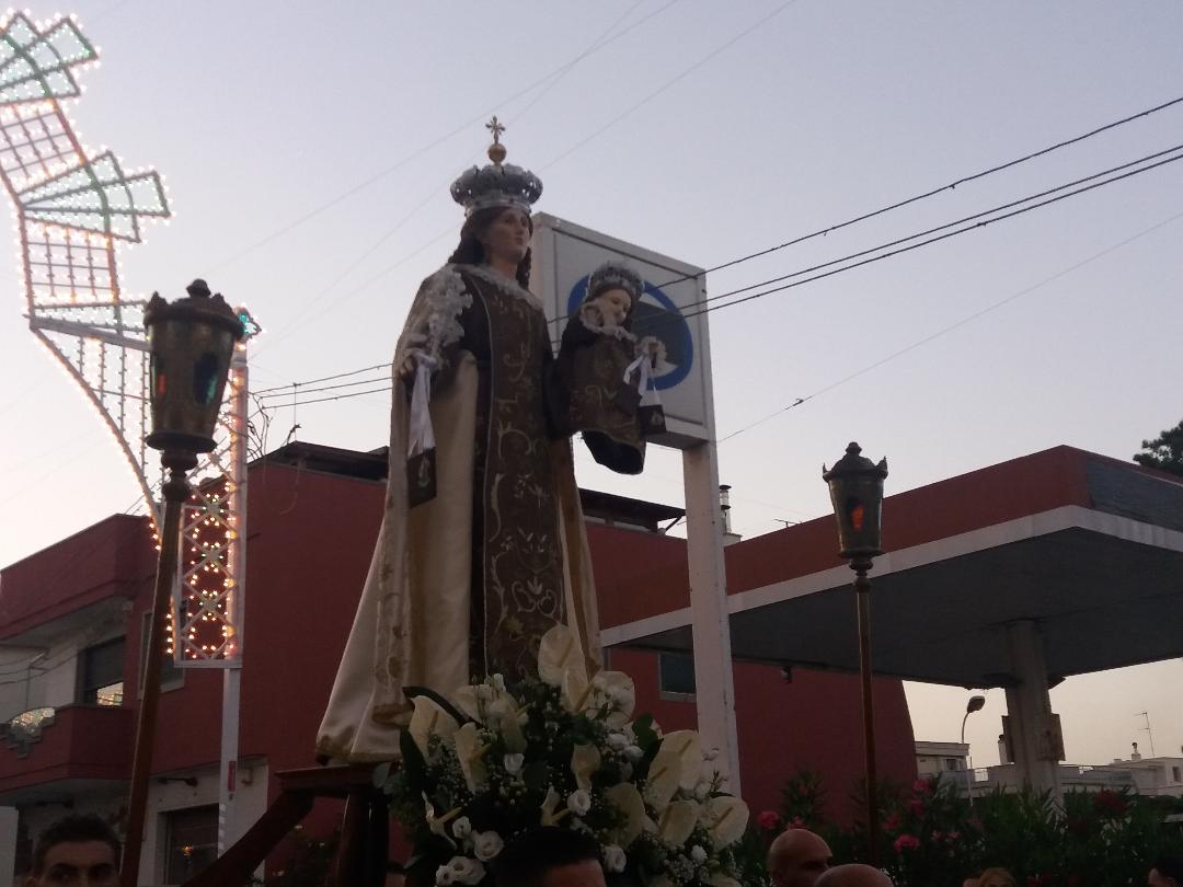 Una lunga settimana di preghiera coordinata dal parroco don Francesco Zaccaria culminata nella serata di ieri con l’intronizzazione dell’effige mariana in piazza ‘XX Settembre’, dove stazionerà con lo sguardo rivolto al paese sino al termine dei festeggiamenti.