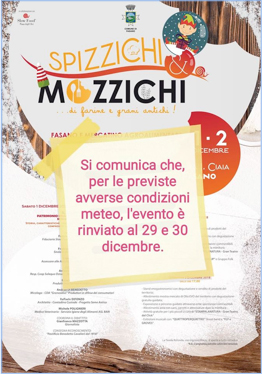 Fasano – Si comunica che la manifestazione di gastronomia, cultura e intrattenimento “Spizzichi & Mozzichi” prevista per il 1 e 2 dicembre E’ RINVIATA ad altra data.