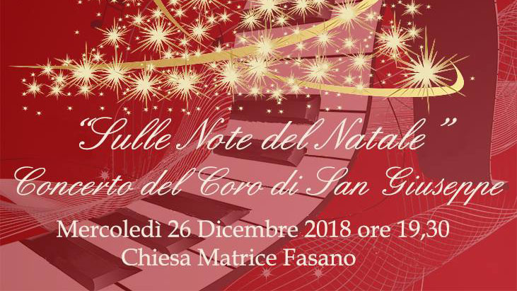 Fasano – Oggi, mercoledì 26 dicembre, come da tradizione, alle ore 19.30 nella Chiesa Matrice si terrà il 24ª Concerto di Natale a cura del Coro della Confraternita di San Giuseppe, diretto da Maria Teresa Lorusso e dalla M° Anna Lorusso, quest’ anno intitolato “Sulle note del Natale”.
