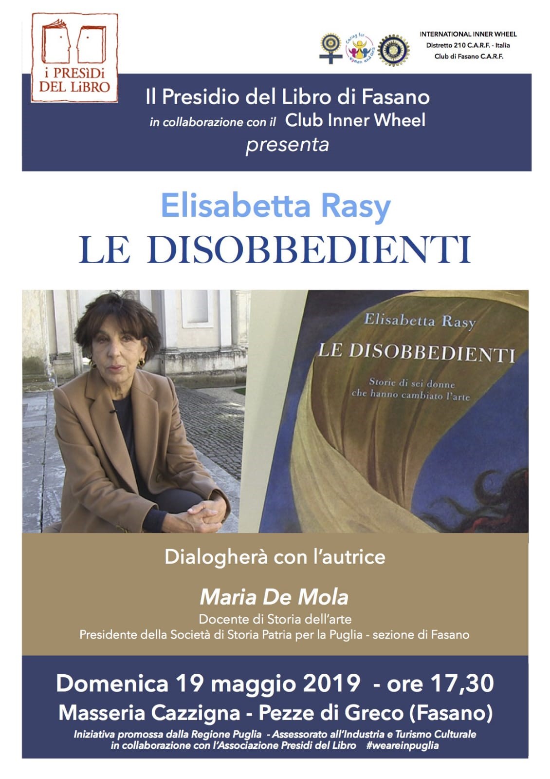 Fasano – La giornalista e scrittrice, Elisabetta Rasy presenterà domemica 19 maggio presso Masseria Cazzigna a Pezze di Greco (BR), il suo romanzo “Le disobbedienti”.