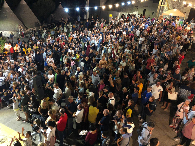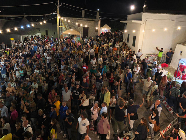 Turisti provenienti da ogni parte d’Italia e pugliesi provenienti dal barese, brindisino e tarantino, hanno scelto di trascorrere la serata nella tipica contrada, gustando frittelle e prelibatezze tipiche, ascoltando e ballando musica dei “I Cipurrid” che hanno proposto suoni tipici della civiltà contadina che rappresentava un momento di svago dal lavoro dei campi.