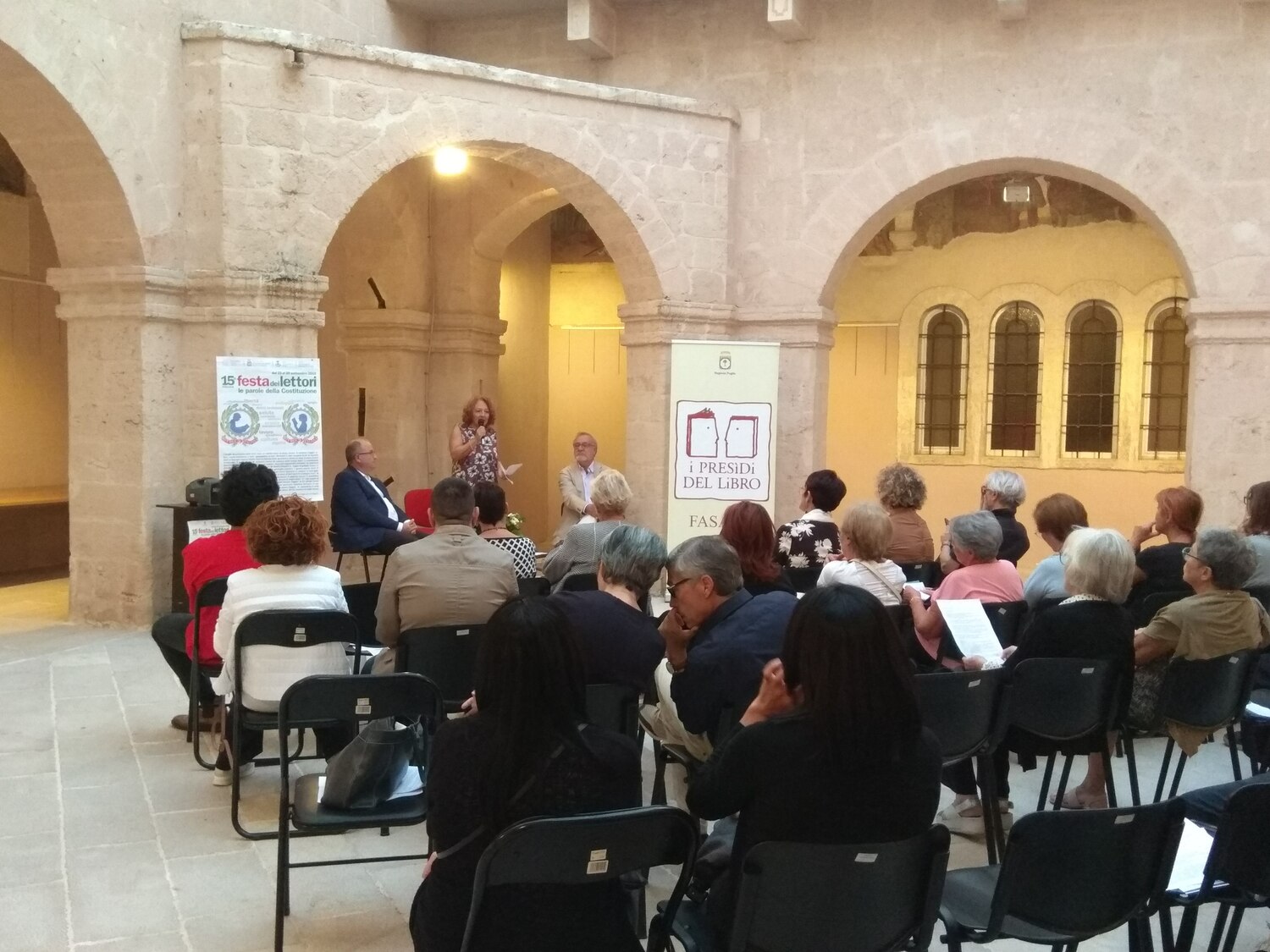 Nell’incontro di ieri 30 settembre, presso il Chiostro dei Minori Osservanti, il dialogo è stato preceduto da una premessa di Annamaria Toma, presidente della sezione di Fasano “Presìdi del libro” che ha curato l’appuntamento. In particolare, la Toma ha voluto omaggiare Lorenza L’Abbate, scomparsa il 29 settembre scorso. Lasciando libero fra il pubblico il posto che lei avrebbe occupato, la professoressa ha ricordato il suo amore per la cultura e il suo impegno con un discorso commovente ed emozionante.