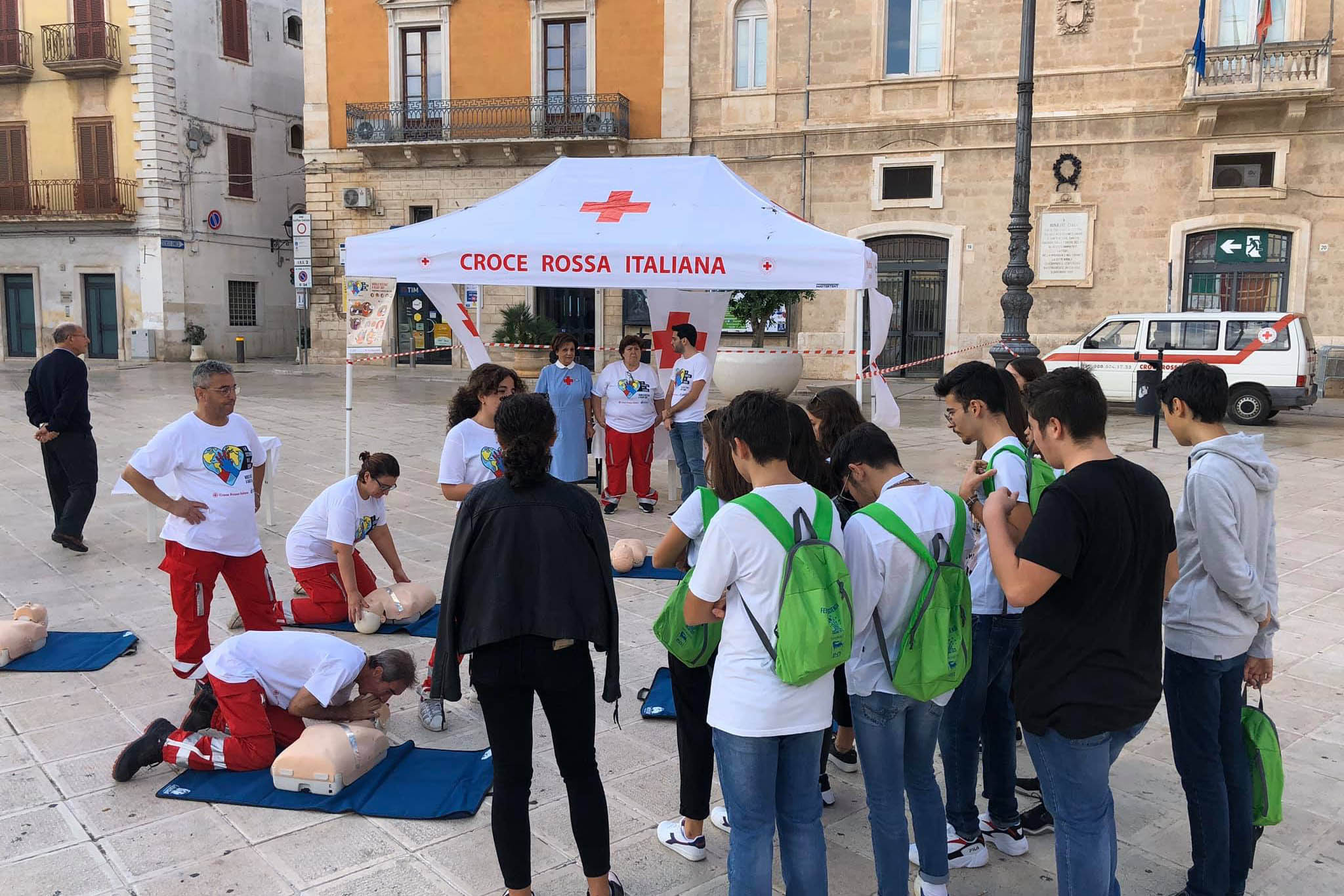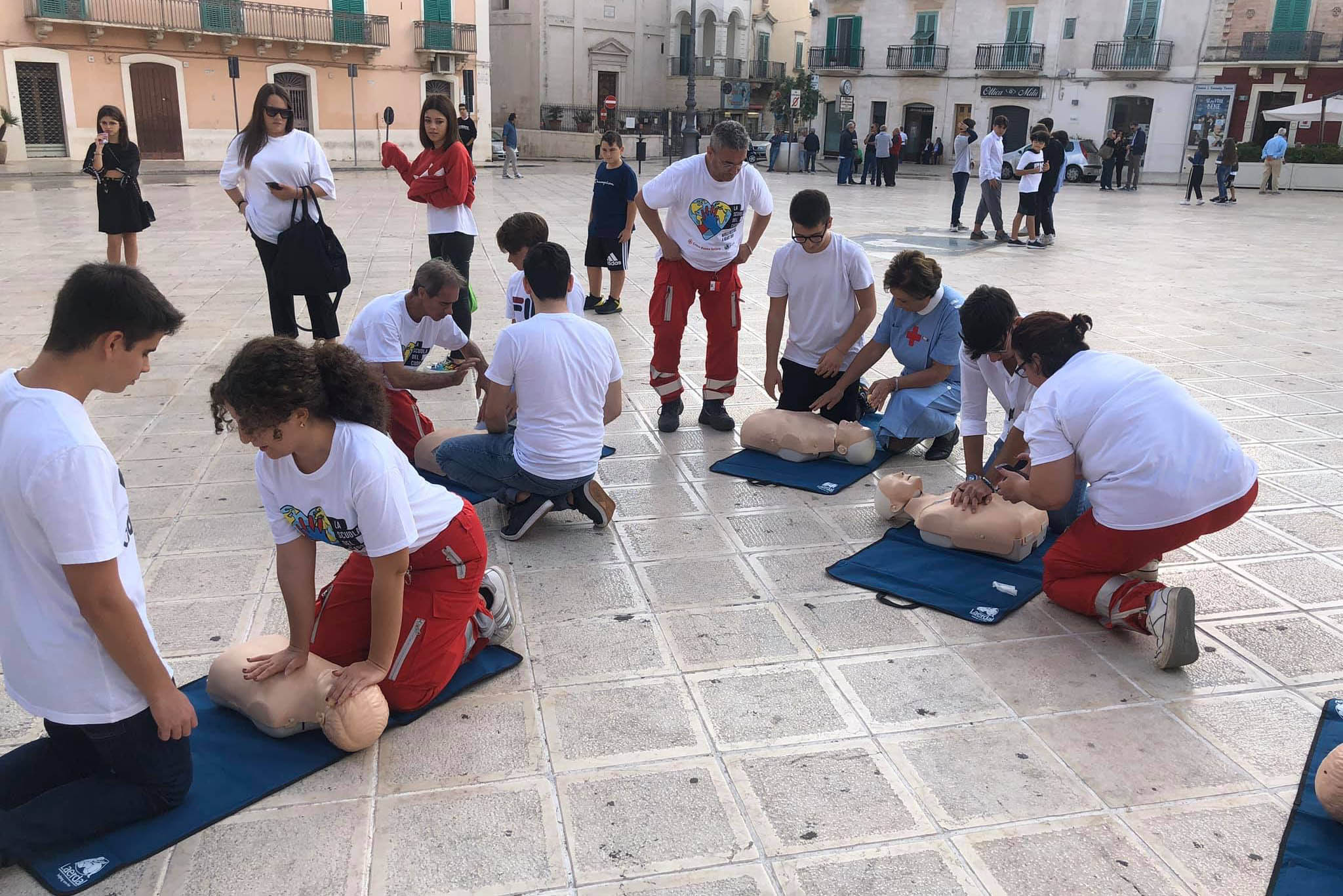 FASANO – Una vera e propria “Scuola del Cuore” quella che in Piazza Ciaia ha visto ieri mattina, domenica 20 ottobre, impegnati i volontari della Croce Rossa Italiana del comitato locale di Fasano. Una giornata interamente dedicata all’insegnamento delle pratiche di soccorso da applicare in caso di arresto cardiaco, in occasione del “World Restart A Day”, la Giornata Mondiale di sensibilizzazione sull’arresto cardiaco.