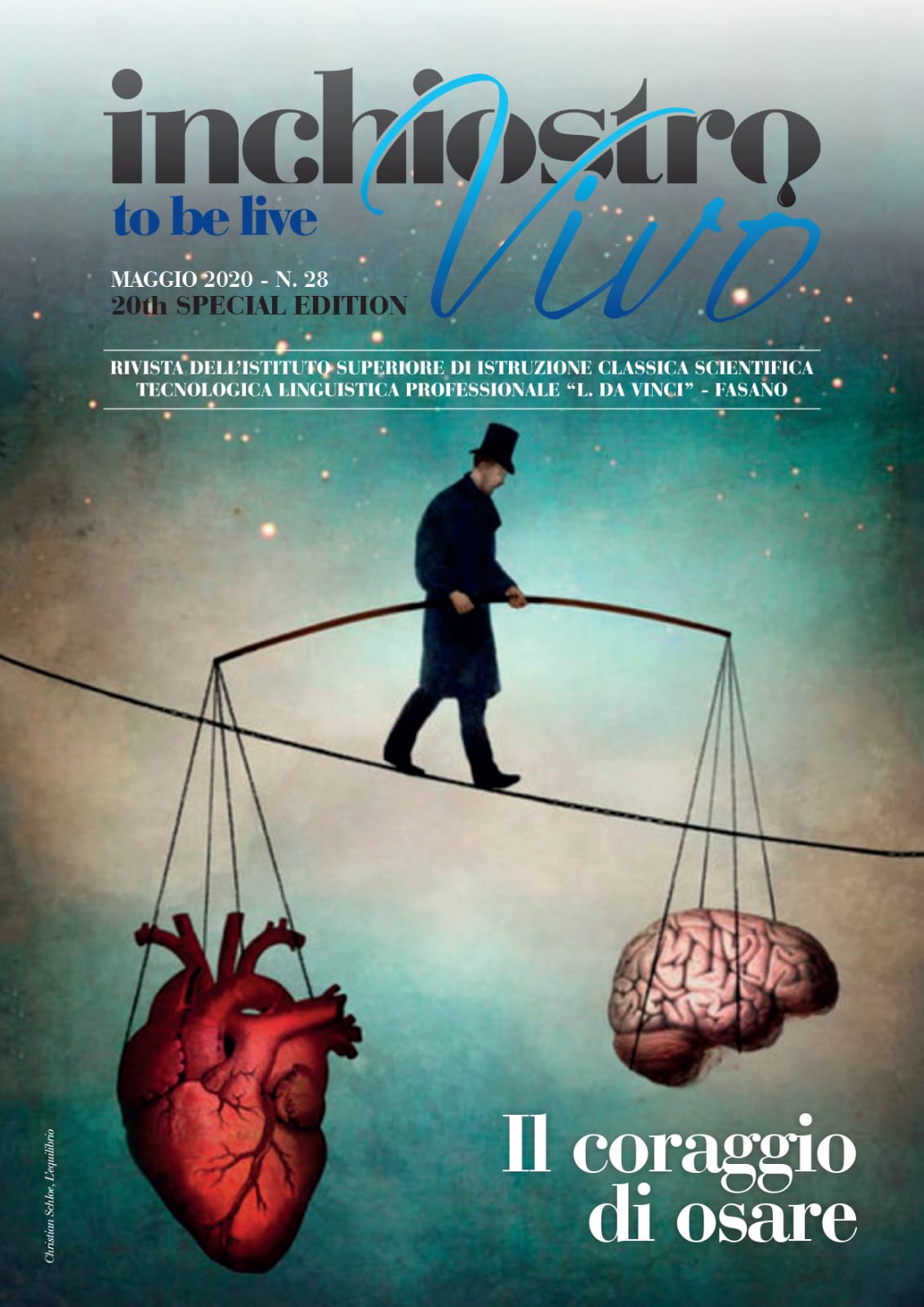 Il tema di questo numero, scelto ad ottobre, è “il coraggio di osare”, e in tutta la rivista viene sviscerato dalle giovani penne della redazione, dalla cultura all’ambiente sino al particolare momento storico caratterizzato dalla pandemia, senza tralasciare i traguardi raggiunti da “Inchiostro Vivo” e i grandi momenti in cui si è “osato”: dagli “eroi” del passato, al messaggio di Federica Angeli, all’associazione “Giorgio Forever”, nonché dell’eroe guerriero casalingo, Giovanni Custodero.