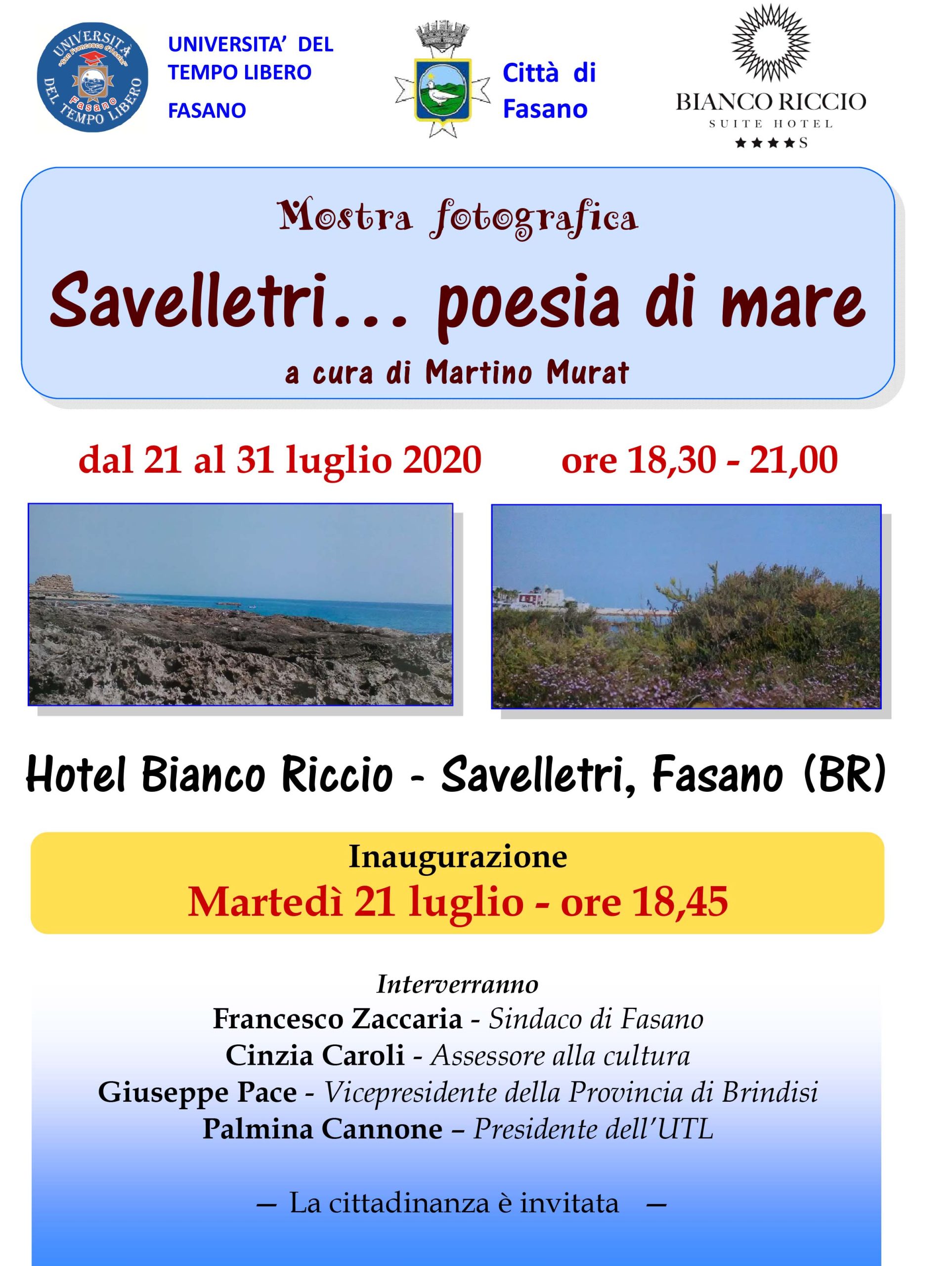 La manifestazione sarà impreziosita dall’Inaugurazione della Mostra Fotografica 'Savelletri… poesia di mare', a cura di Martino Murat