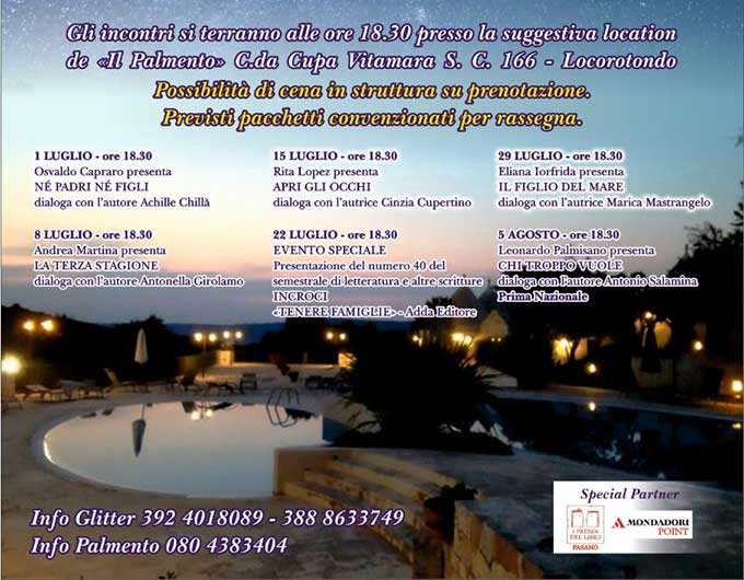 Fasano – La rassegna di approfondimento culturale "Al calar della sera", organizza Glitter presso Il Palmento, in contrada Cupa, sul confine tra il territorio di Fasano e Locorotondo, questa sera, mercoeldì 29 luglio, vedrà protagonista il romanzo "Il figlio del mare" (Pellegrini editore) di Eliana Iorfida.