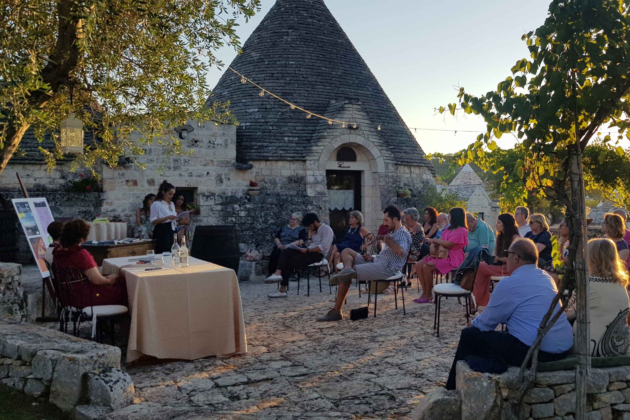 Fasano – Ieri sera, mercoledì 29 luglio, si è svolto il quinto appuntamento della rassegna "Al calar della sera" organizzata da Glitter, in collaborazione con il Presidi del Libro e Mondadori Point, nella suggestiva location del relais "Il Palmento".