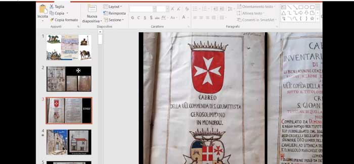 Il professore Crispino introduce l’argomento spiegando come lo studio sui rinvenimenti monetali con un approccio multidisciplinare (come spesso accade nelle ricerche archeologiche sistematiche) consente anche di confrontarsi con fonti storiche non convenzionali: in particolare i cabrei realizzati nel corso dei secoli scorsi.