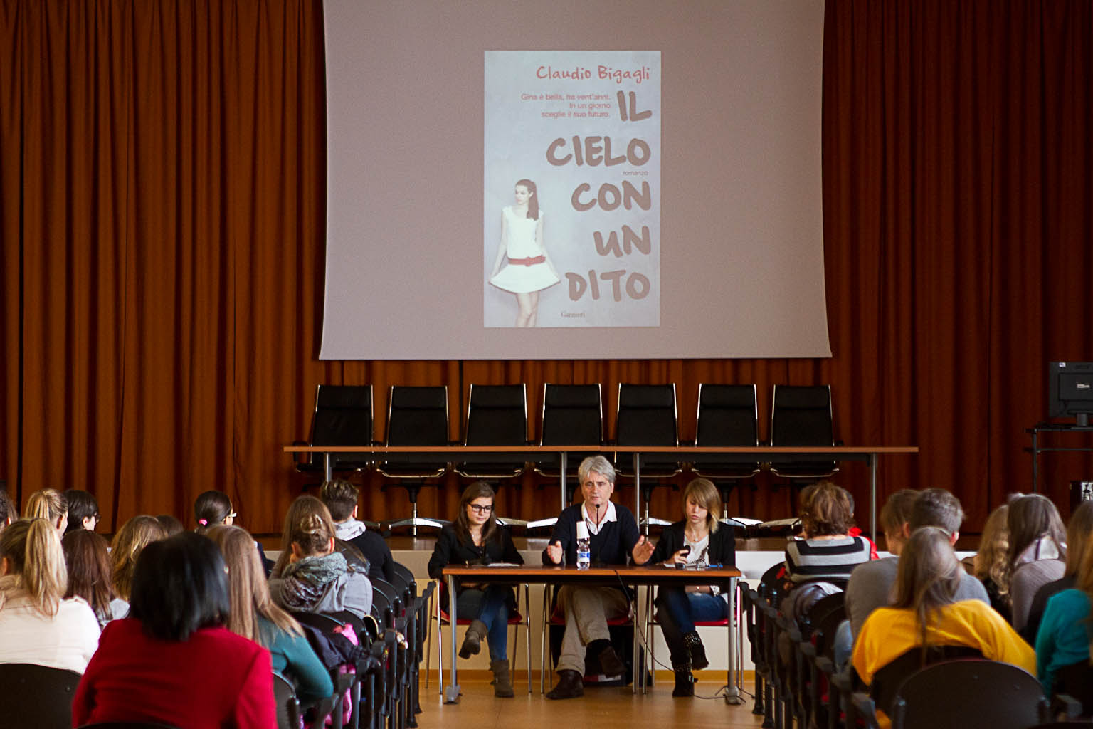FASANO – Un romanzo leggero e spontaneo ma che lascia spazio alla riflessione. Certe volte ci sono cose nella vita che si danno per scontate, etichette che si appiccicano alla leggera sulle persone. Questo romanzo, scorrevole e ben scritto ti incolla alla pagina fino alla fine, è una moderna fiaba metropolitana, con una sua precisa morale. Ha calamitato l’attenzione degli studenti del liceo “L. da Vinci” l’ultimo lavoro editoriale “Il cielo con un dito” dell’attore e regista Claudio Bigagli che è stato ospite, ieri mattina (mercoledì 14 novembre) dell’istituto diretto da Stella Carparelli. L'incontro era organizzato dai Presidi del Libro.