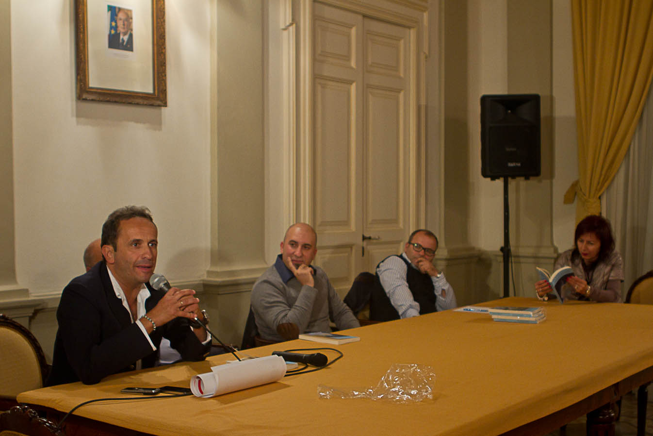 FASANO – Una gremita sala di rappresentanza ha ospitato, ieri sera (giovedì 15 novembre), la presentazione del romanzo di Giuseppe Al Rami Galeota "Non sarà una bolla di sapone", edito dal "Gruppo Albatros". Sono intervenuti, oltre all'autore, il sindaco Lello Di Bari, l'assessore Laura De Mola e l'attore Uccio De Santis. La moderazione è stata affidata al nostro direttore Alfonso Spagnulo.