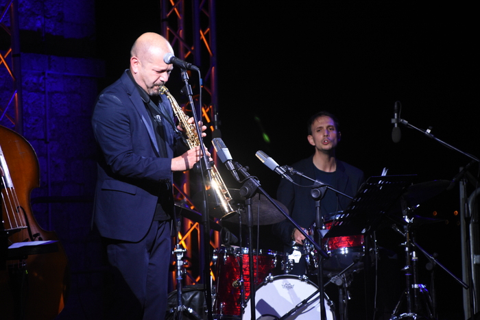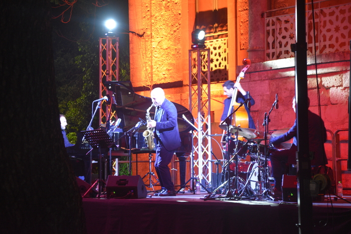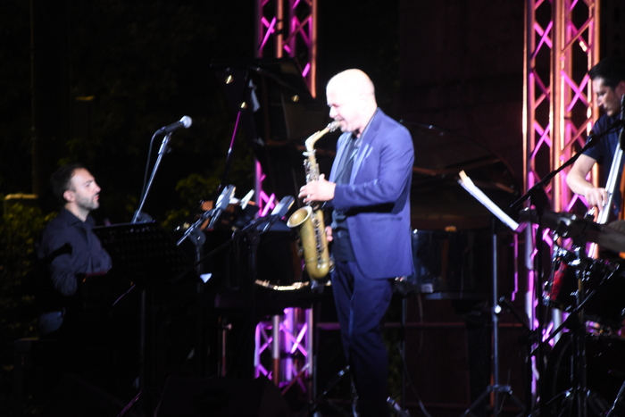 “Noi siamo emozionati di suonare per voi questa sera, questa estate stiamo lavorando tanto, il nostro è un lavoro ma soprattutto un piacere, suonare è una cosa impagabile”, così ha esordito sul palco il musicista romano dopo la prima triade di brani. Il musicista romano si è esibito accompagnato dai suoi immancabili strumenti musicali, un sax Selmer Mark VI con un bocchino Meyer 6M (ance Rico Hemke n°3) mentre il soprano è uno Yamaha 62R con un Otto Link 6* (ance Rico Royal n°3) ma soprattutto accompagnato da musicisti di alto valore: Fred Nardin al pianoforte, Daniele Sorrentino al contrabbasso e André Ceccarelli alla batteria.