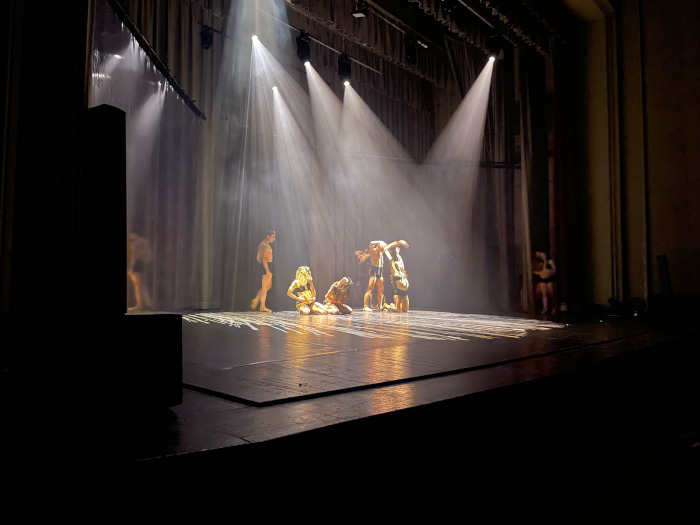 “Boomerang” fa riflettere attraverso le coreografie e i giochi di luce che coinvolgono lo spettatore anche oltre lo spazio scenico del palcoscenico, tutto il teatro diventa palco con una serie di quadri che celebrano ogni forma di vita e gli effetti che l’uomo provoca a essa: dalla sua nascita, crescita e morte.
